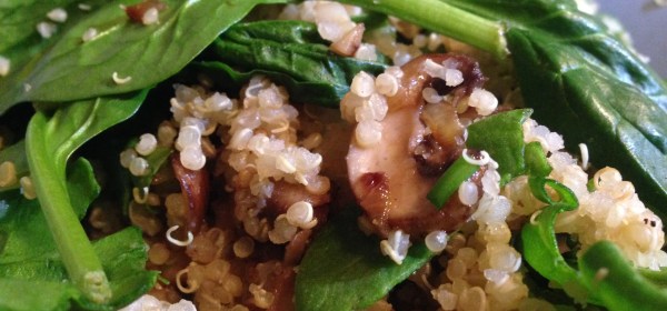 This is delicious warm, and the leftovers are also nice for a cold salad the next day. 3/4 cup quinoa 1 1/2 cups chicken or